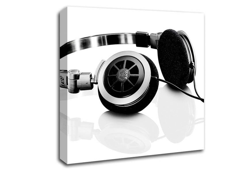 Headphones Square Canvas Print handmade in the UK. Stretched over a 2 inch thick wooden box frame, ready to hang on your wall.