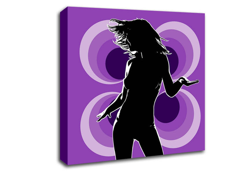 Purple Disco Diva Square Canvas Print handmade in the UK. Stretched over a 2 inch thick wooden box frame, ready to hang on your wall.