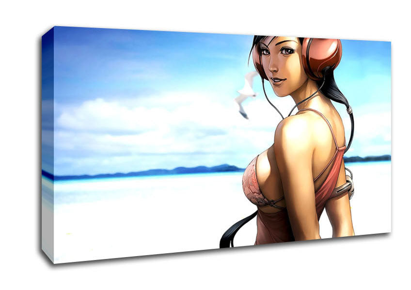 Music Girl Wide Canvas Print handmade in the UK. Stretched over a 2 inch thick wooden box frame, ready to hang on your wall.