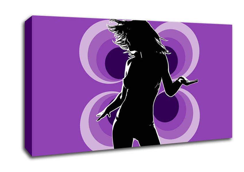 Purple Disco Diva Wide Canvas Print handmade in the UK. Stretched over a 2 inch thick wooden box frame, ready to hang on your wall.