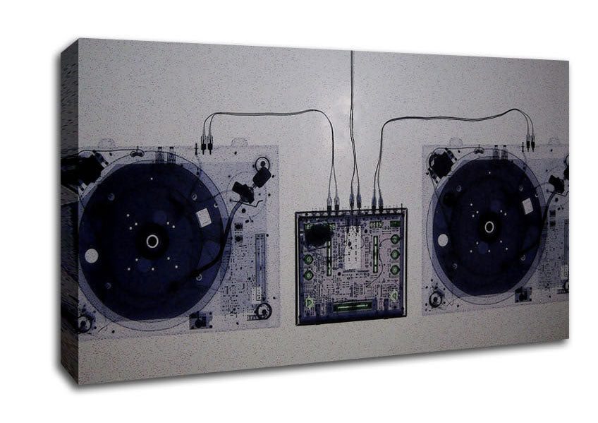 Translucent Dj Console Mixer Wide Canvas Print handmade in the UK. Stretched over a 2 inch thick wooden box frame, ready to hang on your wall.