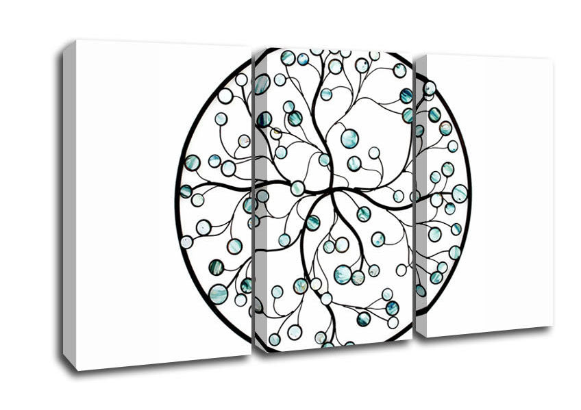 Circle Of Life Blue On White 3 Panel Canvas Print handmade in the UK. Stretched over a 2 inch thick wooden box frame, ready to hang on your wall.