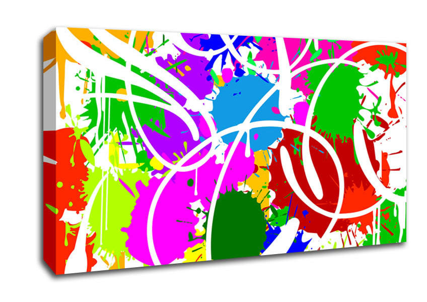 Vibrant Paint Bomb Wide Canvas Print handmade in the UK. Stretched over a 2 inch thick wooden box frame, ready to hang on your wall.