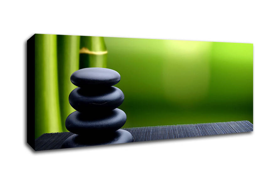 Zen Stones Background Panoramic Canvas Print handmade in the UK. Stretched over a 2 inch thick wooden box frame, ready to hang on your wall.