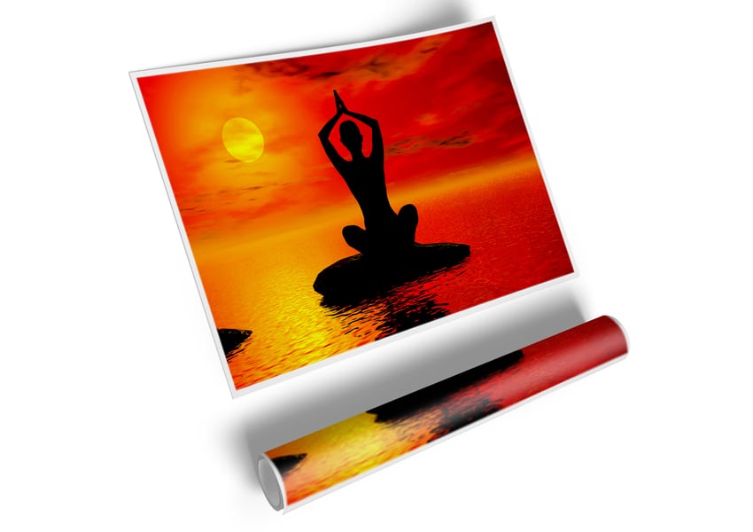 Yoga Ocean Sun Blaze Poster printed on high quality canvas paper, ready to display.