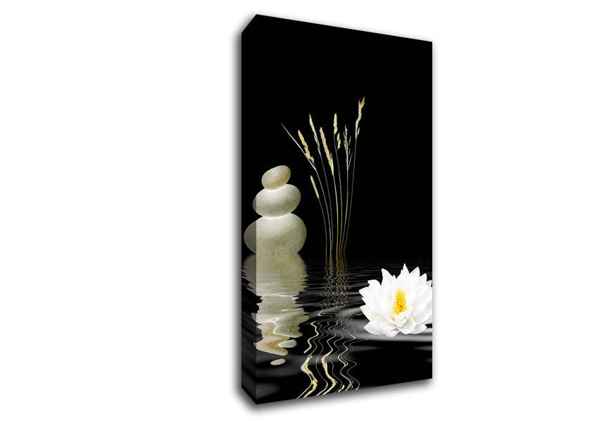 Waterlily Reflection Ripples Wide Canvas Print handmade in the UK. Stretched over a 2 inch thick wooden box frame, ready to hang on your wall.