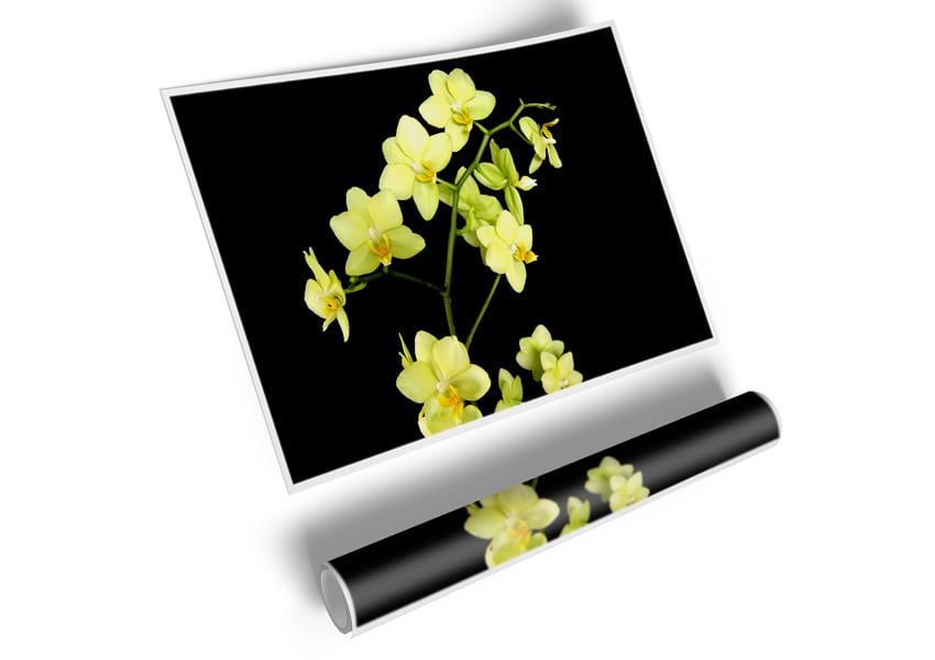 Yellow Star Flowers On Black Poster printed on high quality canvas paper, ready to display.