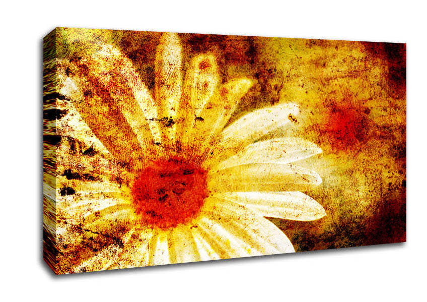 Yellow Daisy Splash Wide Canvas Print handmade in the UK. Stretched over a 2 inch thick wooden box frame, ready to hang on your wall.
