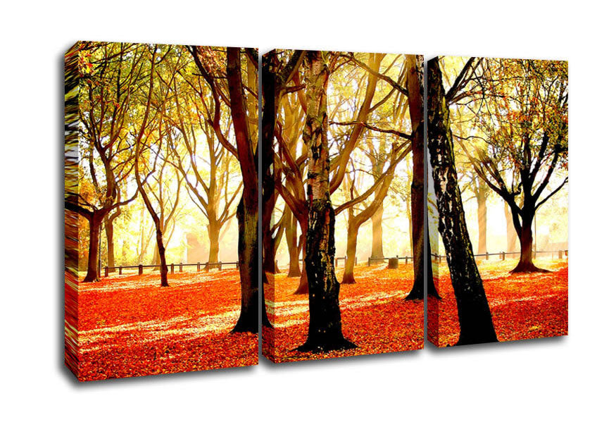 Warm Sunlight 3 Panel Canvas Print handmade in the UK. Stretched over a 2 inch thick wooden box frame, ready to hang on your wall.