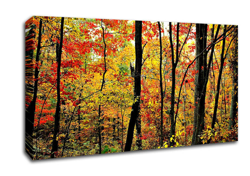 The Rainbow Of The Autumn Forest Wide Canvas Print handmade in the UK. Stretched over a 2 inch thick wooden box frame, ready to hang on your wall.