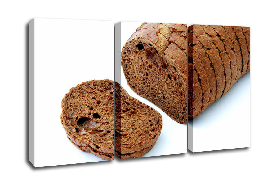Brown Bread 3 Panel Canvas Print handmade in the UK. Stretched over a 2 inch thick wooden box frame, ready to hang on your wall.