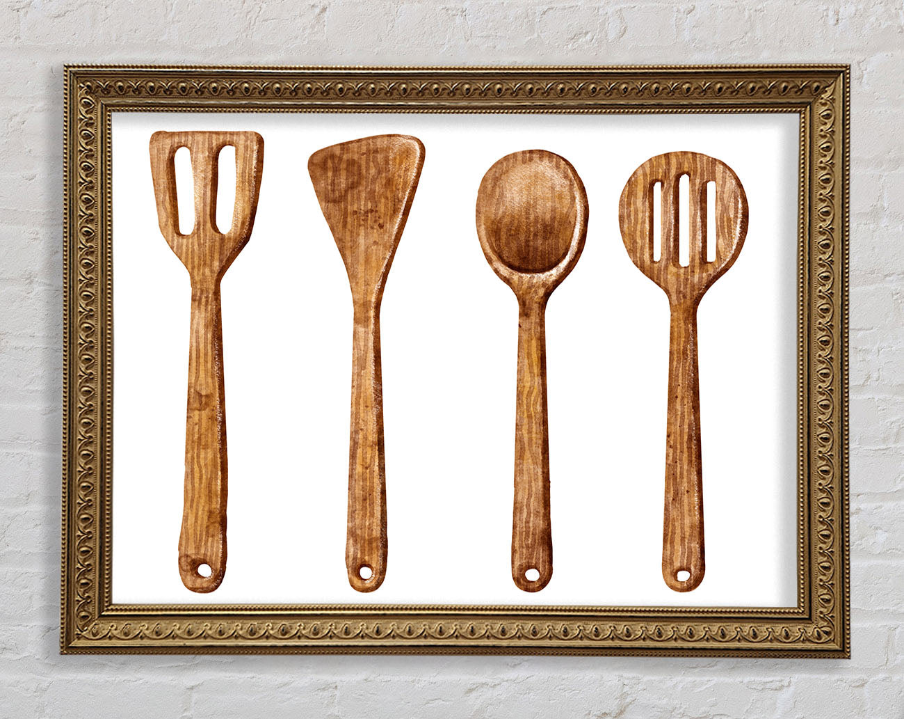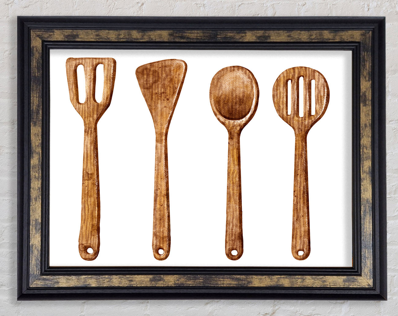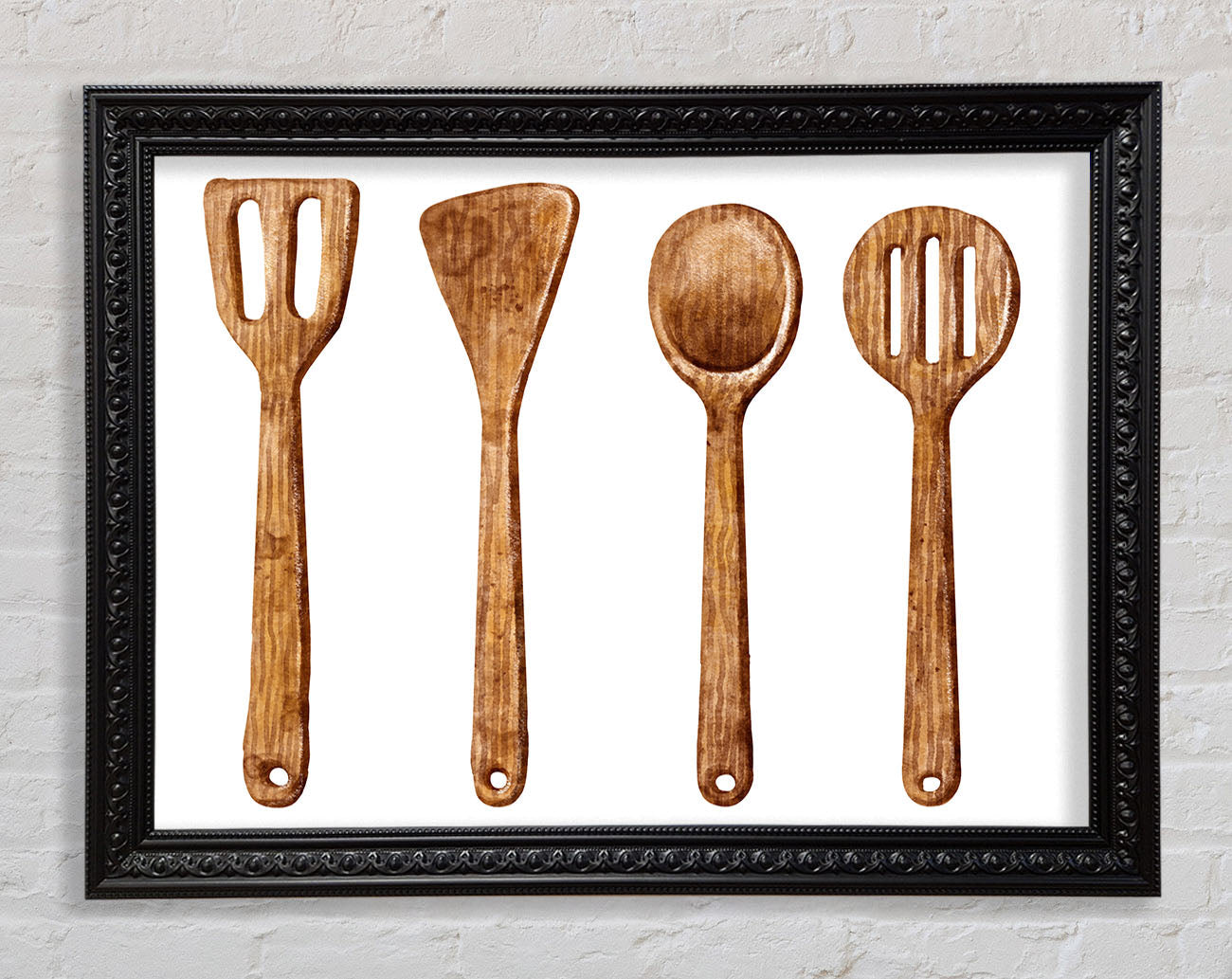Title: Wooden Utensils Framed Wall Art