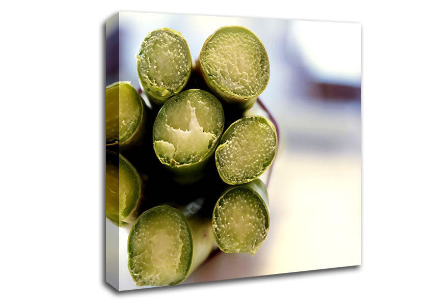 Asparagus Ends Square Canvas Print handmade in the UK. Stretched over a 2 inch thick wooden box frame, ready to hang on your wall.