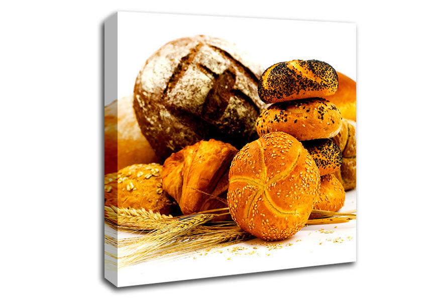 Bread Choice Square Canvas Print handmade in the UK. Stretched over a 2 inch thick wooden box frame, ready to hang on your wall.