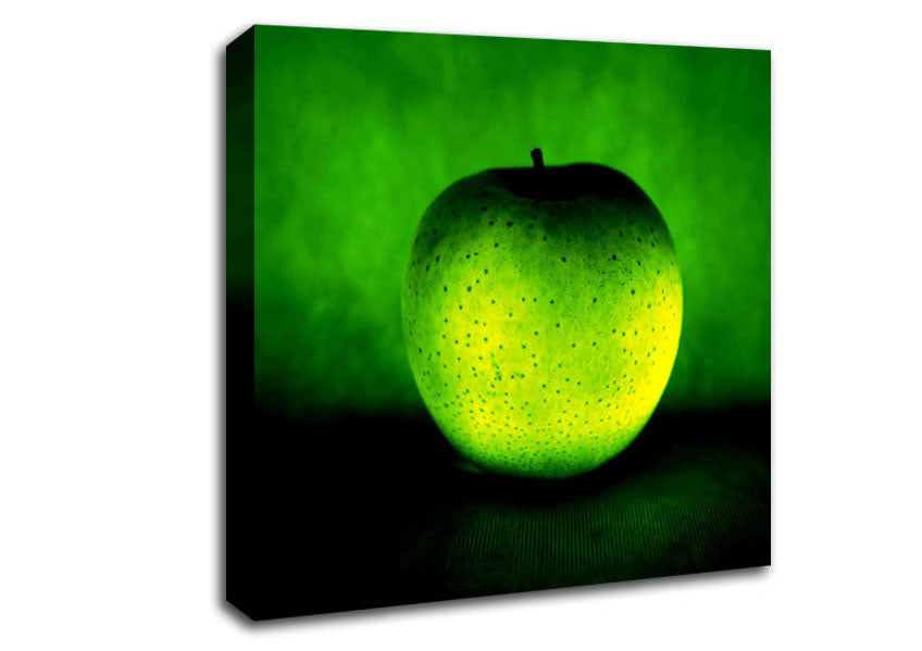 The Glowing Apple Square Canvas Print handmade in the UK. Stretched over a 2 inch thick wooden box frame, ready to hang on your wall.