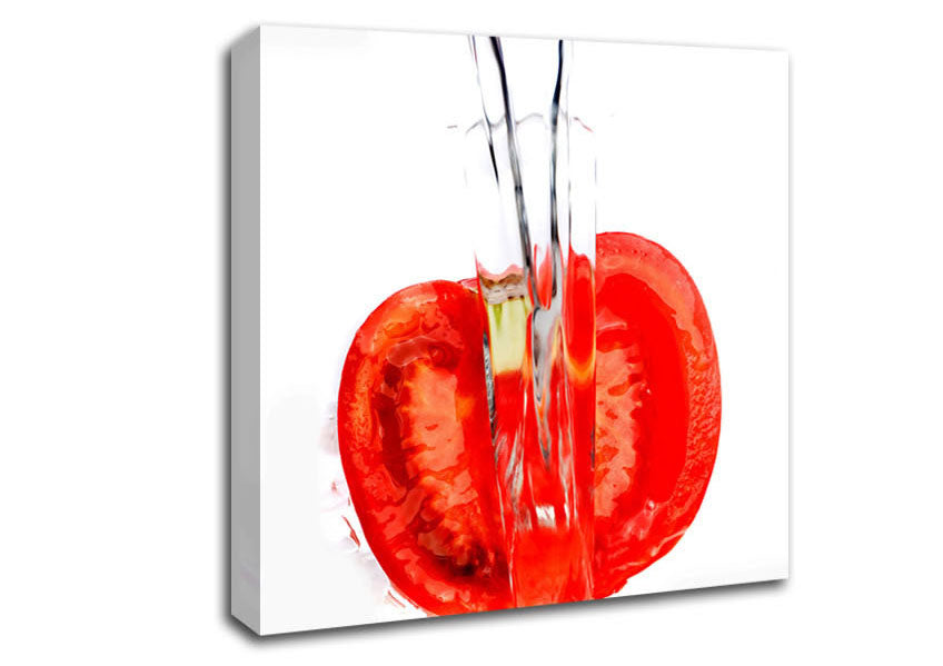 Tomato Waterfall Square Canvas Print handmade in the UK. Stretched over a 2 inch thick wooden box frame, ready to hang on your wall.