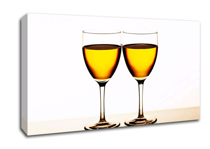 White Wine Duo Wide Canvas Print handmade in the UK. Stretched over a 2 inch thick wooden box frame, ready to hang on your wall.
