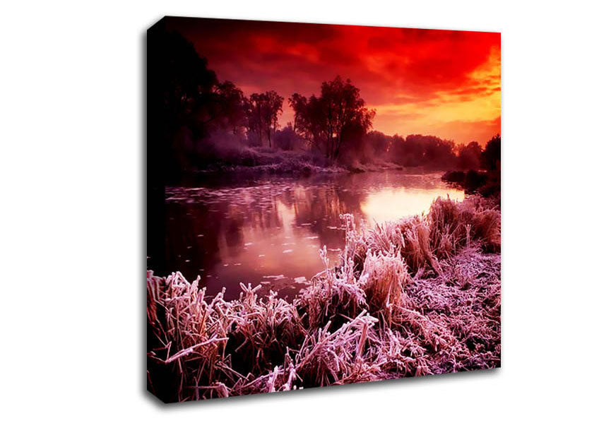 Winter By The Lake Square Canvas Print handmade in the UK. Stretched over a 2 inch thick wooden box frame, ready to hang on your wall.