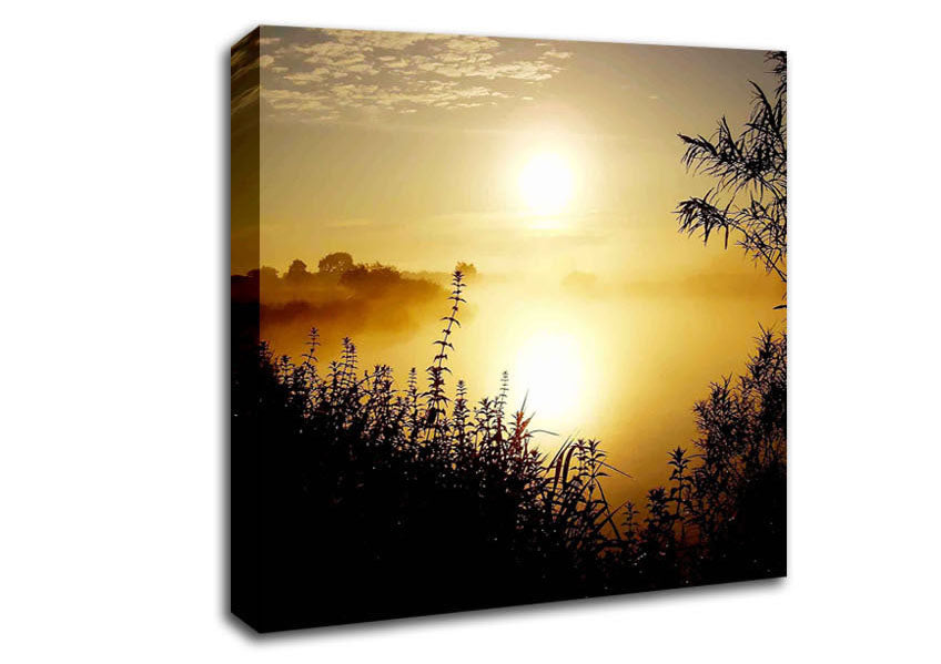 Yellow Winter Lake Square Canvas Print handmade in the UK. Stretched over a 2 inch thick wooden box frame, ready to hang on your wall.