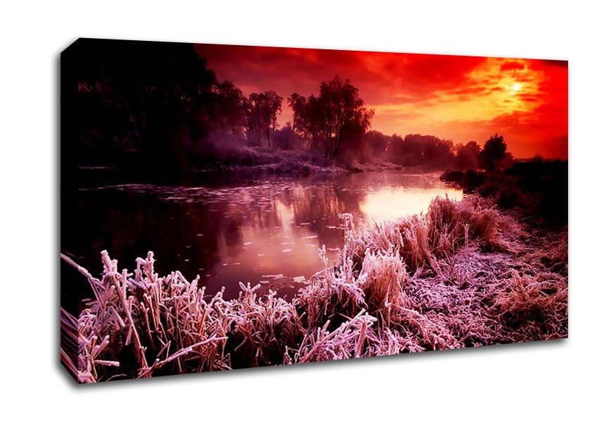 Winter By The Lake Wide Canvas Print handmade in the UK. Stretched over a 2 inch thick wooden box frame, ready to hang on your wall.