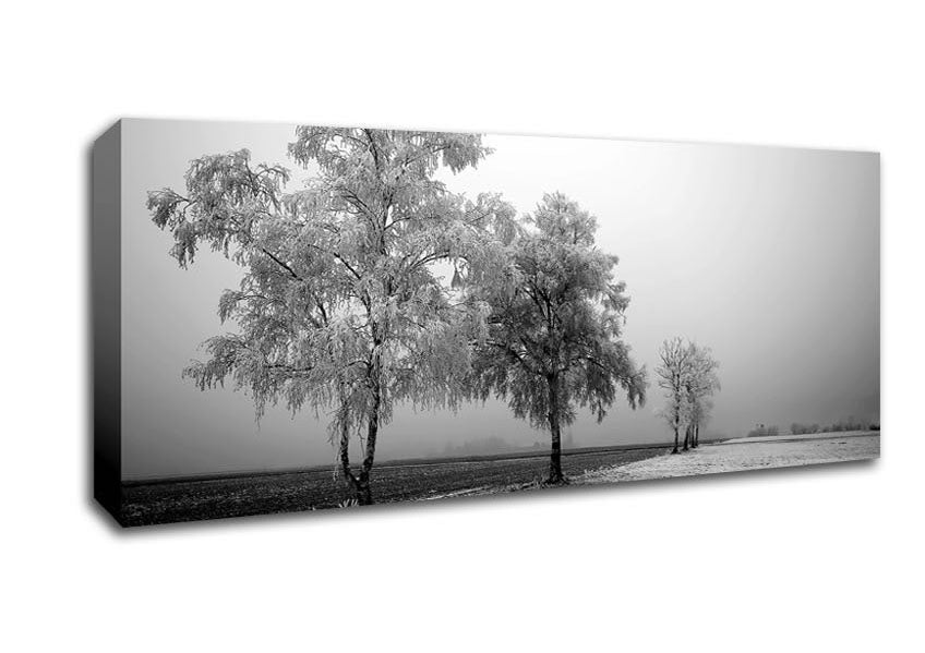 Winter Parade B n W Panoramic Canvas Print handmade in the UK. Stretched over a 2 inch thick wooden box frame, ready to hang on your wall.