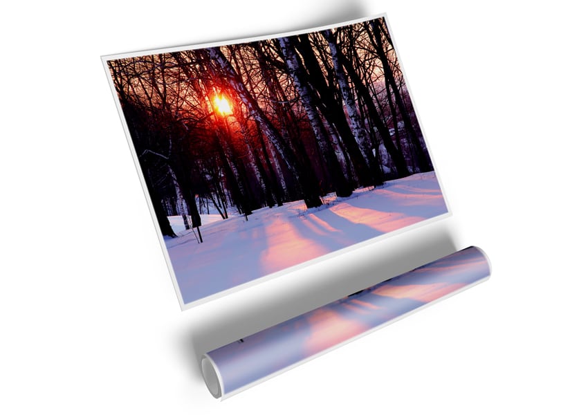 Winter Woodland Sun Poster printed on high quality canvas paper, ready to display.