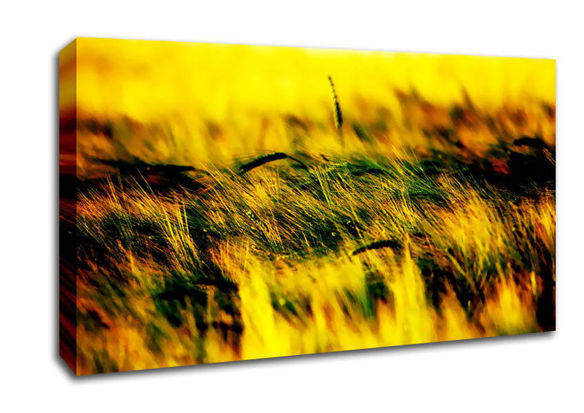 Wheatfield Yellow Wide Canvas Print handmade in the UK. Stretched over a 2 inch thick wooden box frame, ready to hang on your wall.