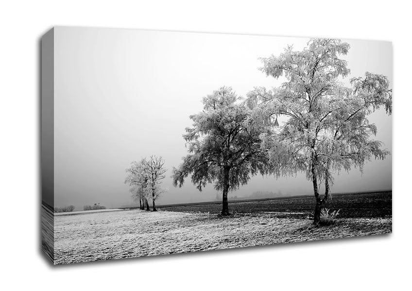 Winter Mist B n W Wide Canvas Print handmade in the UK. Stretched over a 2 inch thick wooden box frame, ready to hang on your wall.