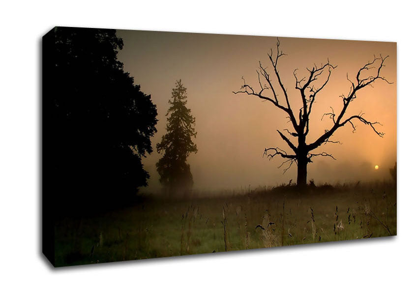 Winter Tree In The Mist Wide Canvas Print handmade in the UK. Stretched over a 2 inch thick wooden box frame, ready to hang on your wall.