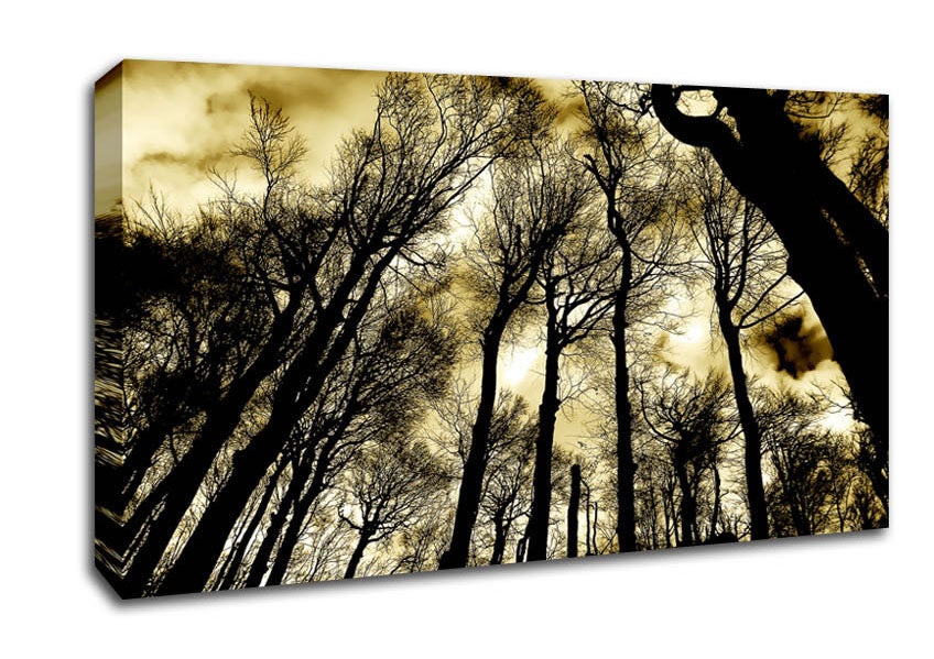 Woodland Skies Wide Canvas Print handmade in the UK. Stretched over a 2 inch thick wooden box frame, ready to hang on your wall.