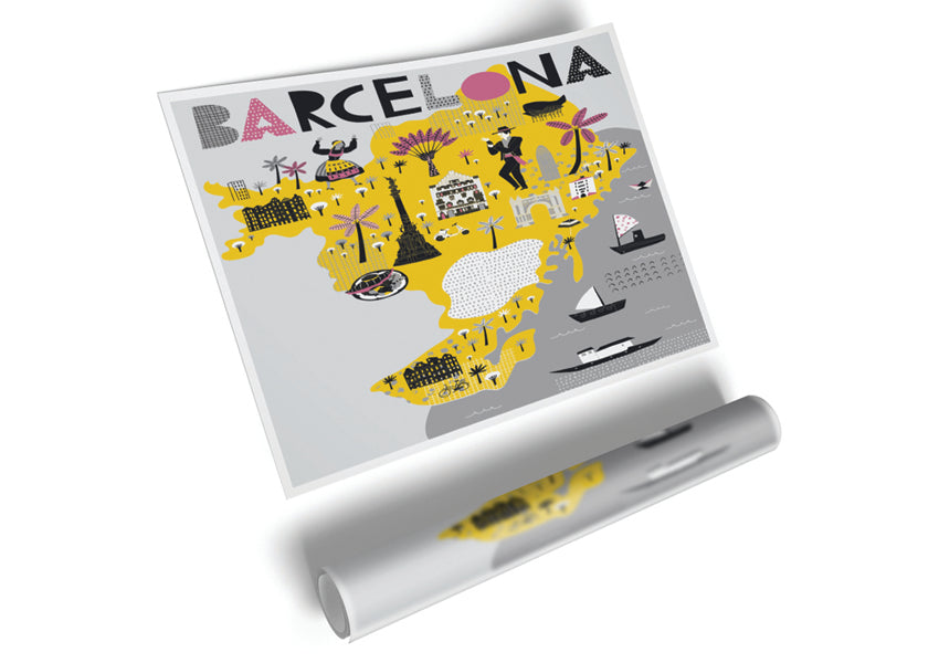 The Little Map Of Barcelona Poster printed on high quality canvas paper, ready to display.