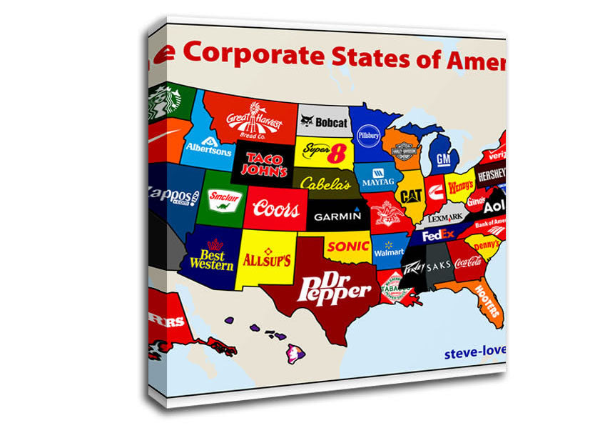 United Corporations Of America Map Square Canvas Print handmade in the UK. Stretched over a 2 inch thick wooden box frame, ready to hang on your wall.