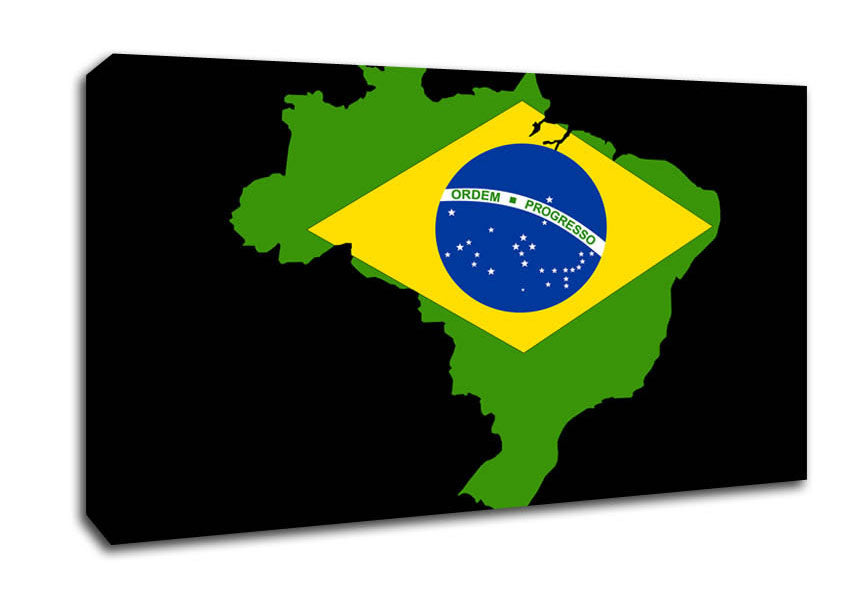Brazillian Flag Map Wide Canvas Print handmade in the UK. Stretched over a 2 inch thick wooden box frame, ready to hang on your wall.
