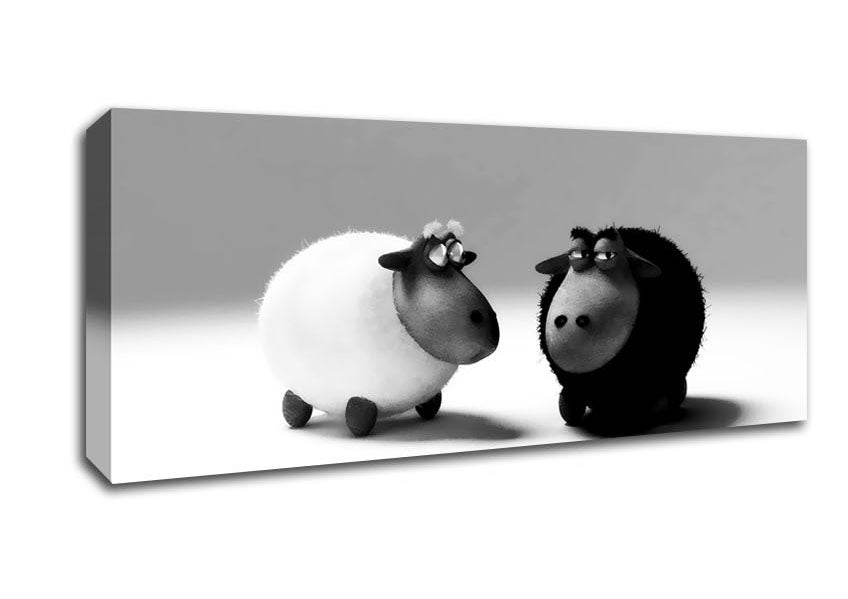 The Black Sheep Of The Family Panoramic Canvas Print handmade in the UK. Stretched over a 2 inch thick wooden box frame, ready to hang on your wall.