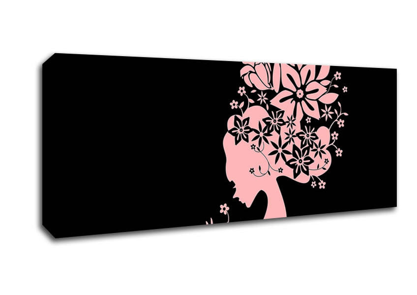 The Flower Girl Black Panoramic Canvas Print handmade in the UK. Stretched over a 2 inch thick wooden box frame, ready to hang on your wall.