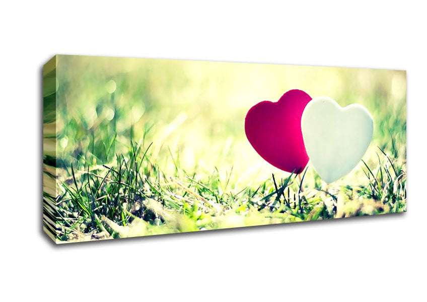 Valentines Day Hearts Panoramic Canvas Print handmade in the UK. Stretched over a 2 inch thick wooden box frame, ready to hang on your wall.