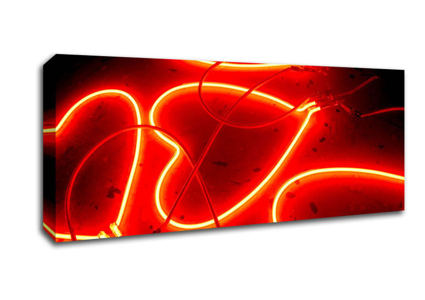Valentines Day Neon Heart Panoramic Canvas Print handmade in the UK. Stretched over a 2 inch thick wooden box frame, ready to hang on your wall.