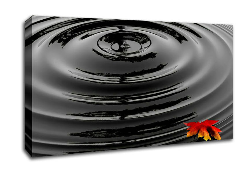 Water Ripple Red Leaf Wide Canvas Print handmade in the UK. Stretched over a 2 inch thick wooden box frame, ready to hang on your wall.