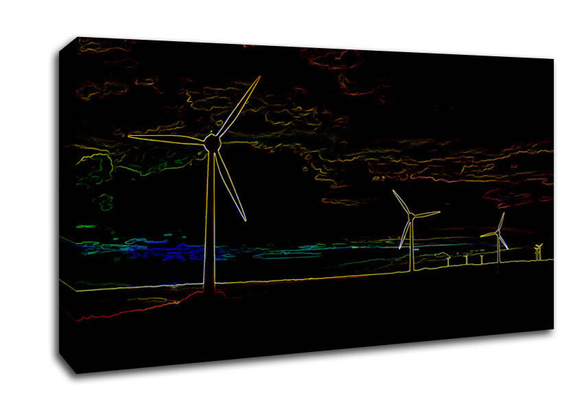 Wind Farm 02 Wide Canvas Print handmade in the UK. Stretched over a 2 inch thick wooden box frame, ready to hang on your wall.