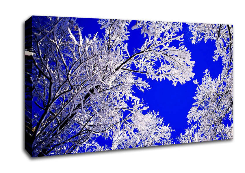 Winter Ice Tree In Sunlight Wide Canvas Print handmade in the UK. Stretched over a 2 inch thick wooden box frame, ready to hang on your wall.