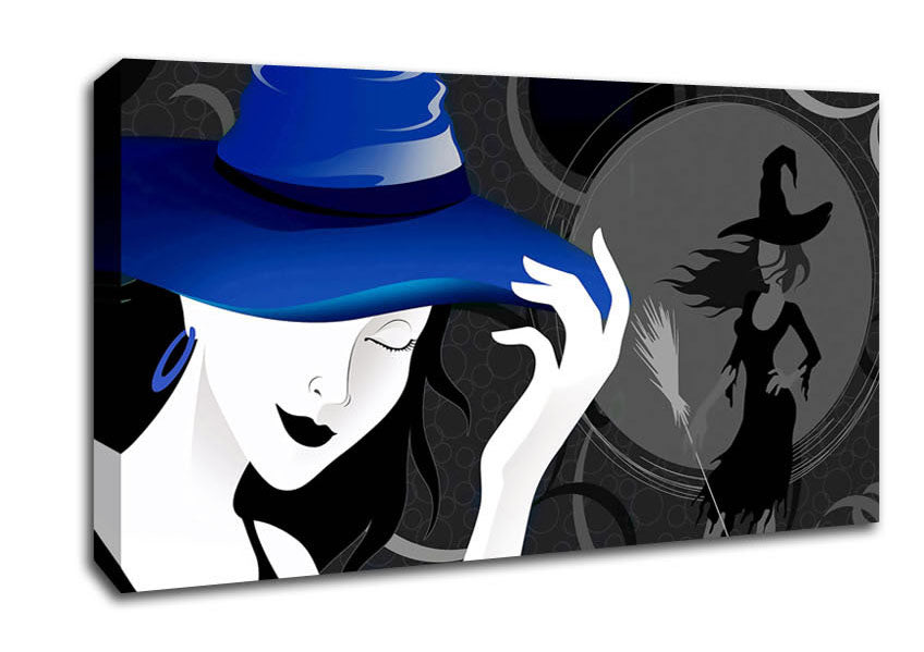 Woman In The Blue Hat Wide Canvas Print handmade in the UK. Stretched over a 2 inch thick wooden box frame, ready to hang on your wall.
