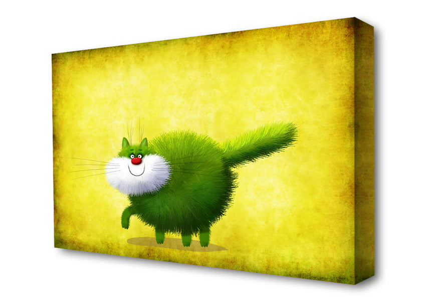 The Green Fuzzy Cat Canvas Print handmade in the UK. Stretched over a 2 inch thick wooden box frame, ready to hang on your wall.