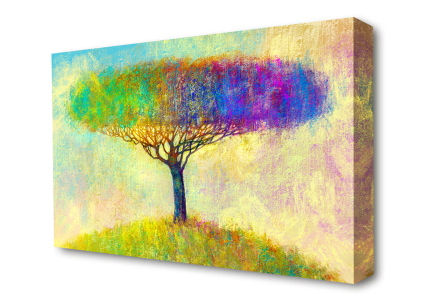 The Yellow To Blue Tree Canvas Print handmade in the UK. Stretched over a 2 inch thick wooden box frame, ready to hang on your wall.