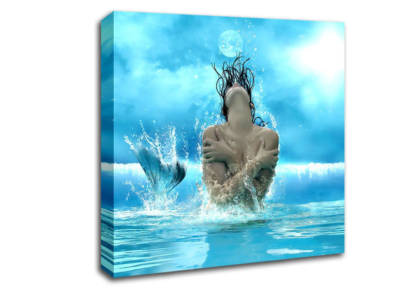 Mermaid Fantasy Girl Square Canvas Print handmade in the UK. Stretched over a 2 inch thick wooden box frame, ready to hang on your wall.