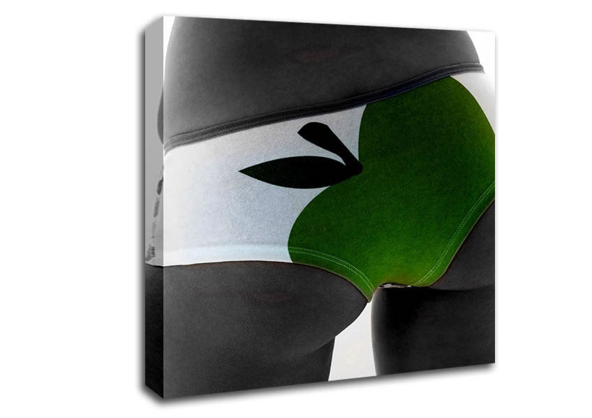 Sexy Apple Knickers B n W Square Canvas Print handmade in the UK. Stretched over a 2 inch thick wooden box frame, ready to hang on your wall.
