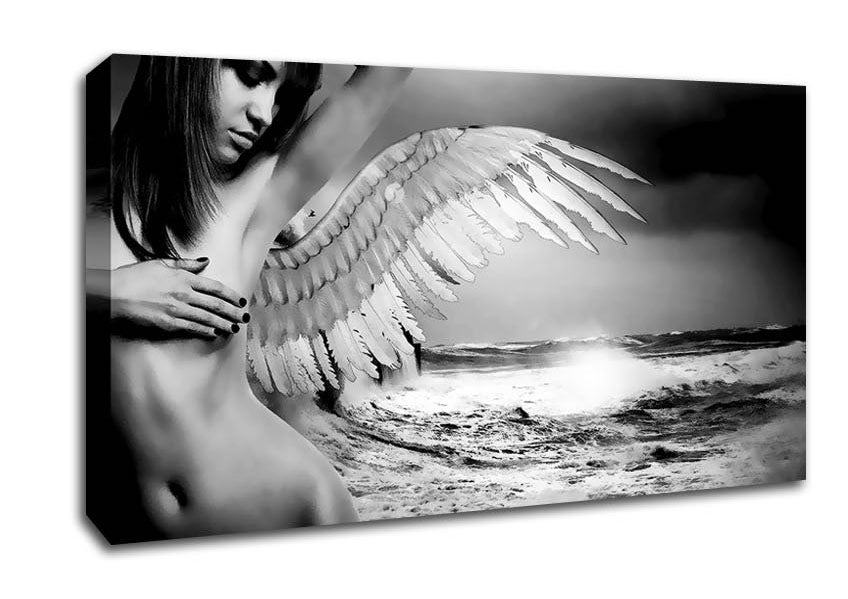 Ocean Angel Wide Canvas Print handmade in the UK. Stretched over a 2 inch thick wooden box frame, ready to hang on your wall.