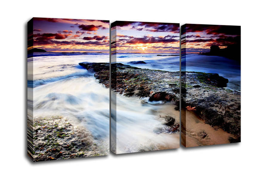 The Swell Of The Ocean 3 Panel Canvas Print handmade in the UK. Stretched over a 2 inch thick wooden box frame, ready to hang on your wall.