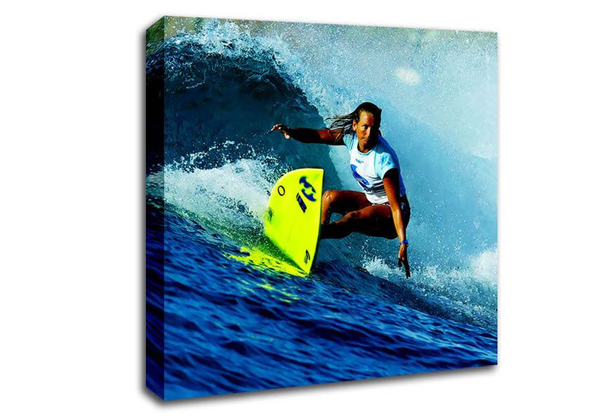 Surfer Number One Female Square Canvas Print handmade in the UK. Stretched over a 2 inch thick wooden box frame, ready to hang on your wall.