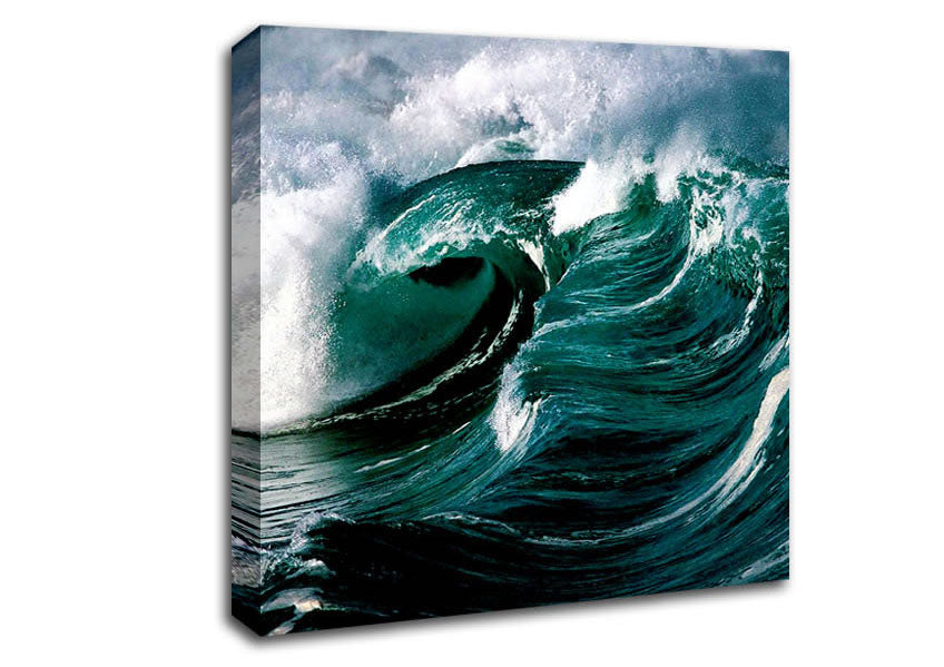 The Green Crashing Waves Square Canvas Print handmade in the UK. Stretched over a 2 inch thick wooden box frame, ready to hang on your wall.