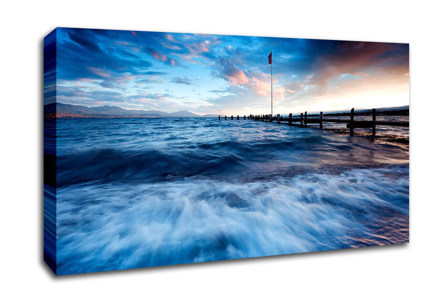 Sea Twilight Wide Canvas Print handmade in the UK. Stretched over a 2 inch thick wooden box frame, ready to hang on your wall.